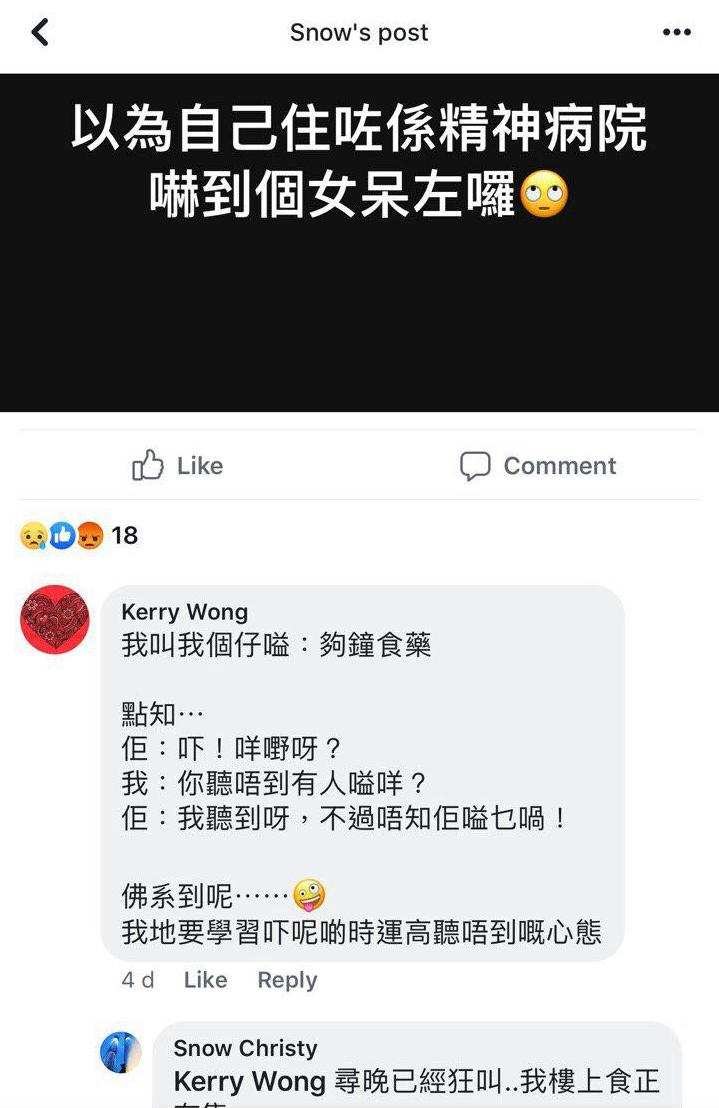 佢曾經係Facebook認同十點窗邊叫口號活動係「狗吠」。