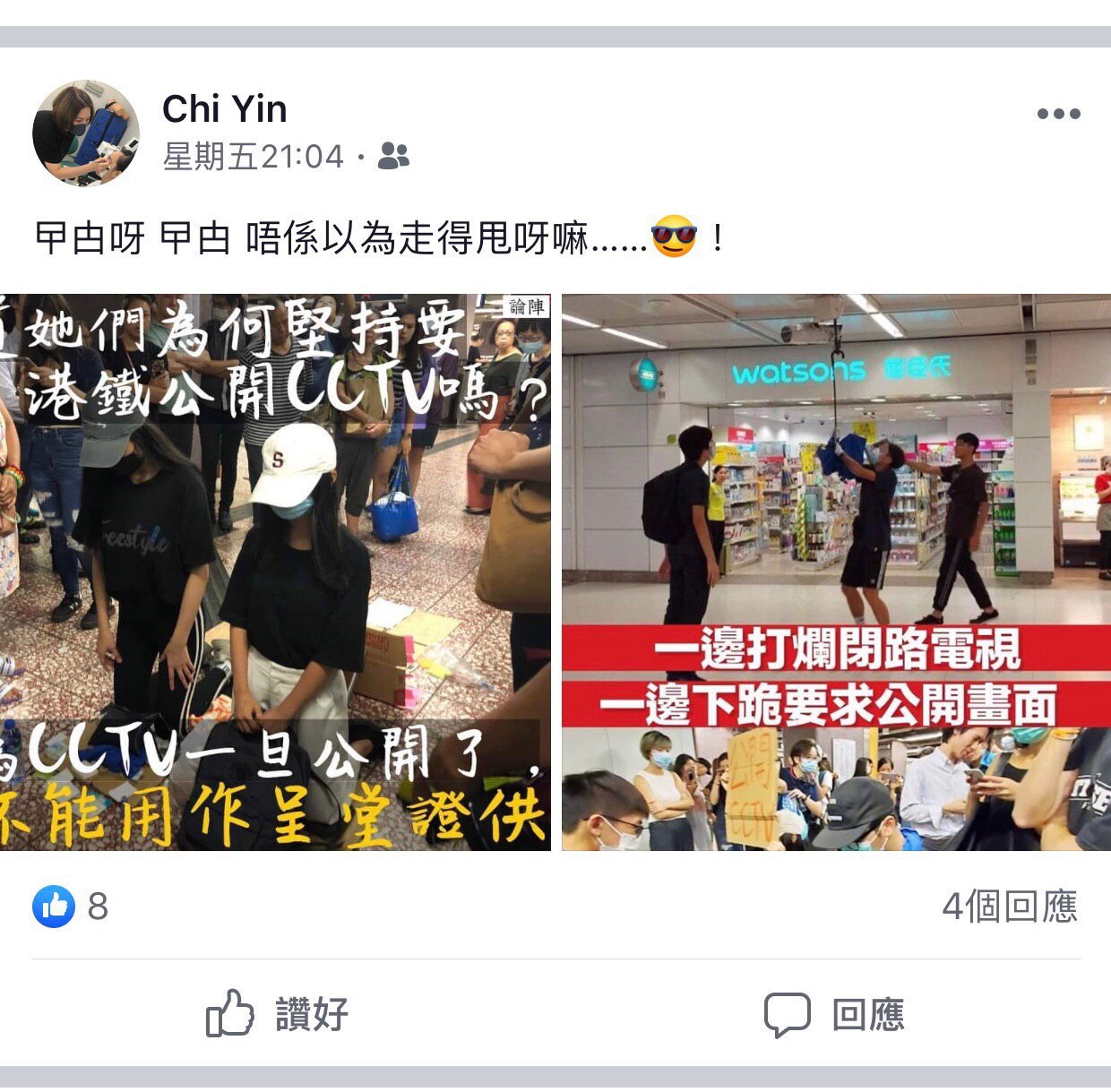 佢曾經稱讚2019年7月21日參加元朗恐襲嘅恐佈份子,又日日指責示威者係「曱甴」。