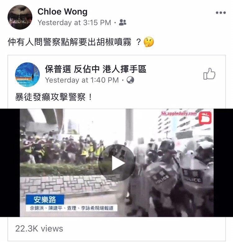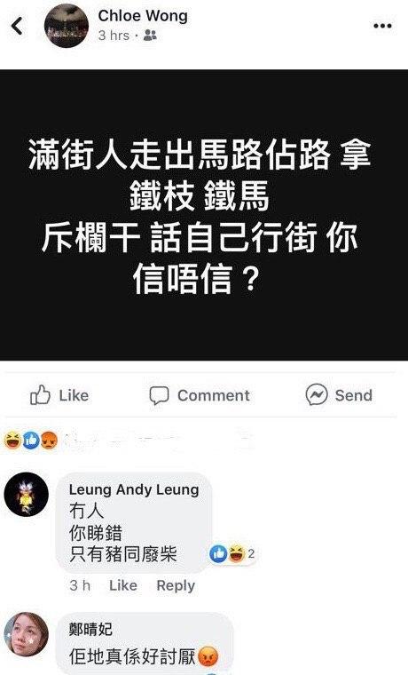 佢曾經多次係Facebook發表支持親中撐警嘅言論,詳見下列圖片。