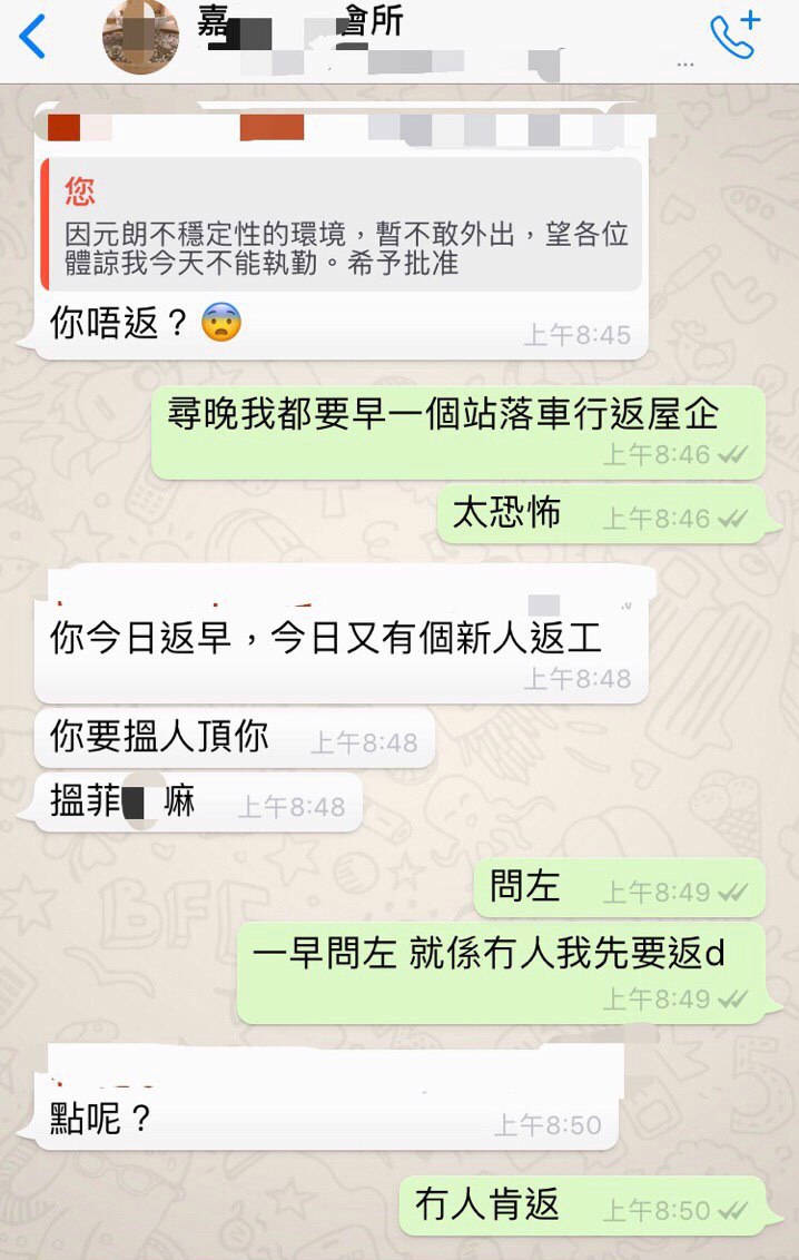 元朗恐襲後翌日,有員工擔心人身安全不敢外出致無法上班執勤。佢無視員工安全,質疑員工缺勤為藉口。又對員工說「我不會為員工上班下班途中因此受傷而負責,你可以唔做既,你話唔做既我地可能接受啦」。