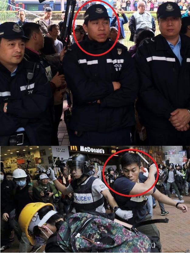 陳植培係香港警察嘅一份子,封面圖片顯示佢曾經係2014年12月雨傘革命期間,追打正在離開嘅示威者。