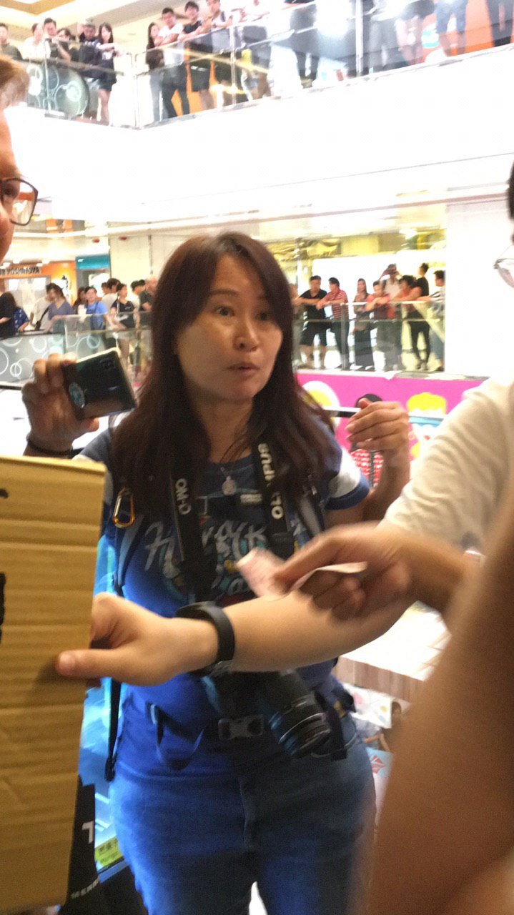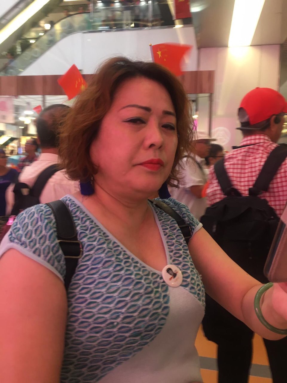 此人(群)係一名撐警藍絲,支持香港警察濫權濫捕並為此歡呼。以下呢群人曾經係2019年9月14日,於九龍灣參加愛中國活動。